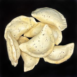 Składniki: Ziemniaki gotowane, kapusta kiszona, mąka pszenna, jaja, cebula smażona, olej rzepakowy rafinowany, sól, pieprz czarny mielony.