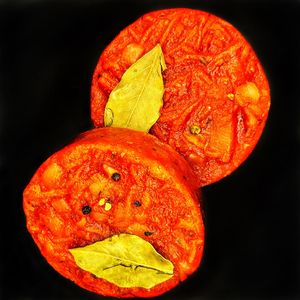 Składniki: cebula smażona, marchewka smażona, pulpa pomidorowa, olej rzepakowy rafinowany, rozmaryn, bazylia, tymiank, cząbr ogrodowej, oregano, majeranek, czosnek granulowany, papryka wędzona, sól, pieprz czarny, list lawrowy
